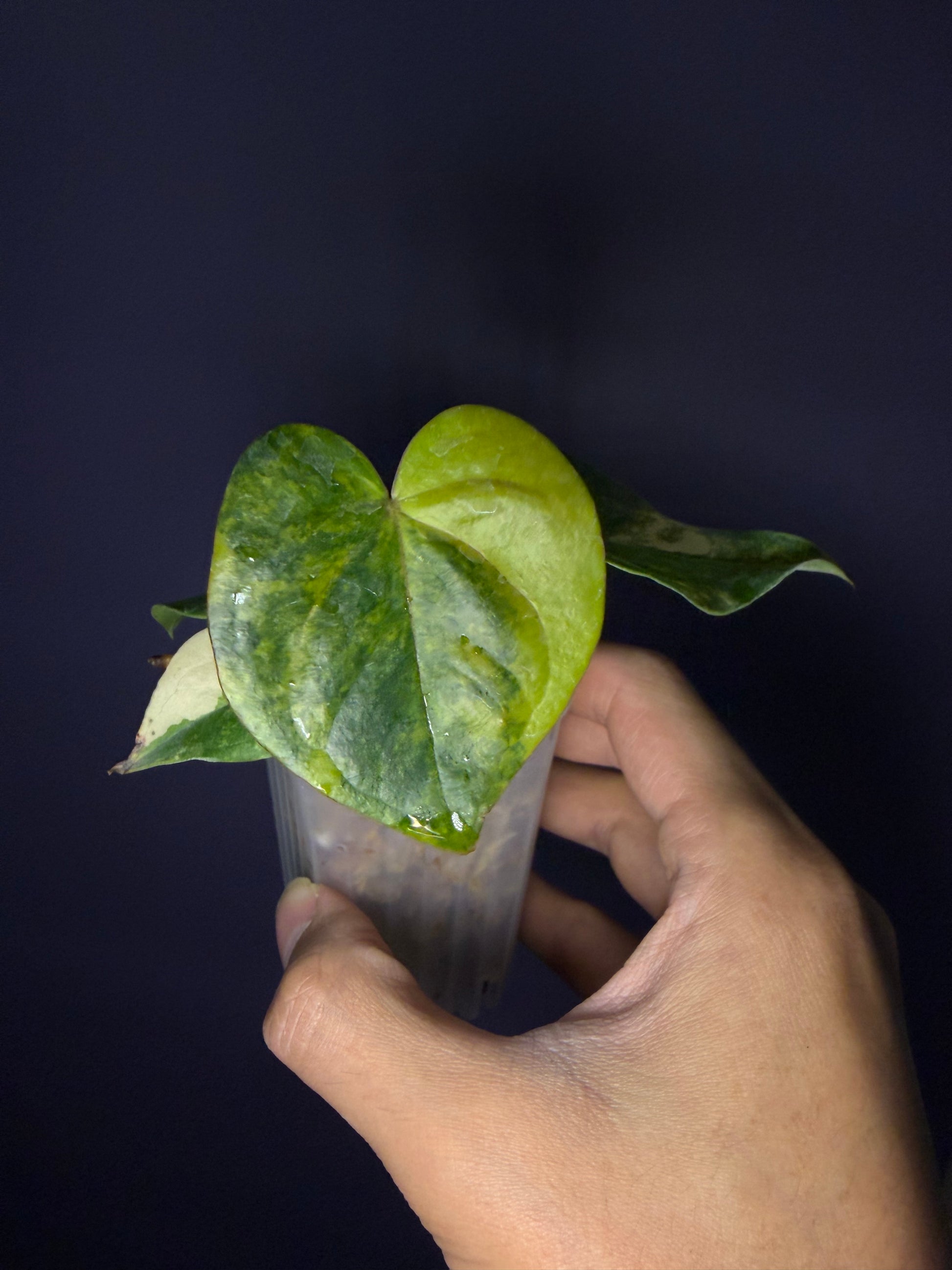 This is a special variegated anthurium, which often shows different variegated color on each leaf and beautiful patterns!
