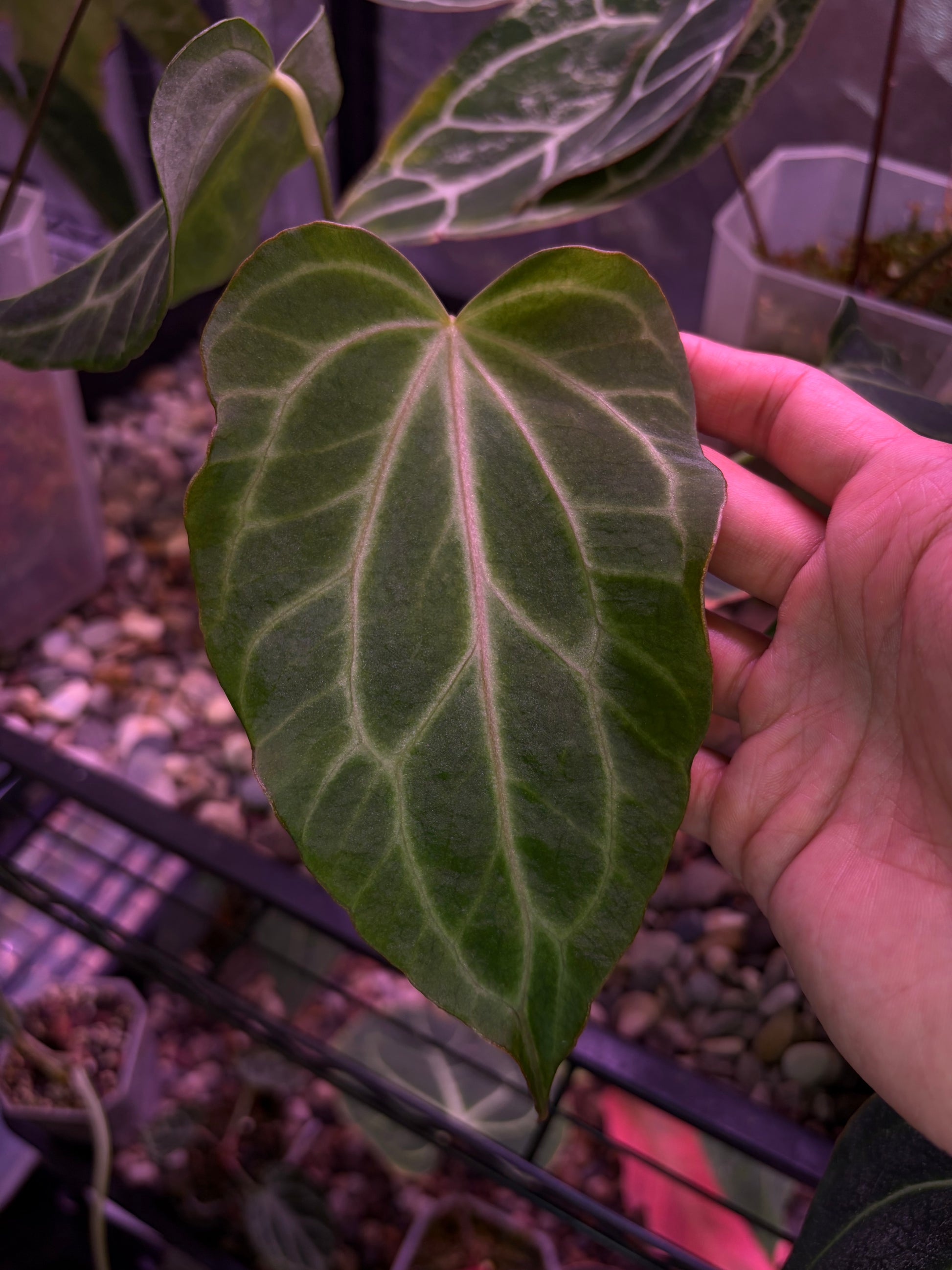Anthurium clarinervium does not have so many hybrids as other foliage anthuriums, but there are a few interesting mutated forms we found in the past. Each leaf is a surprise, and enjoy!