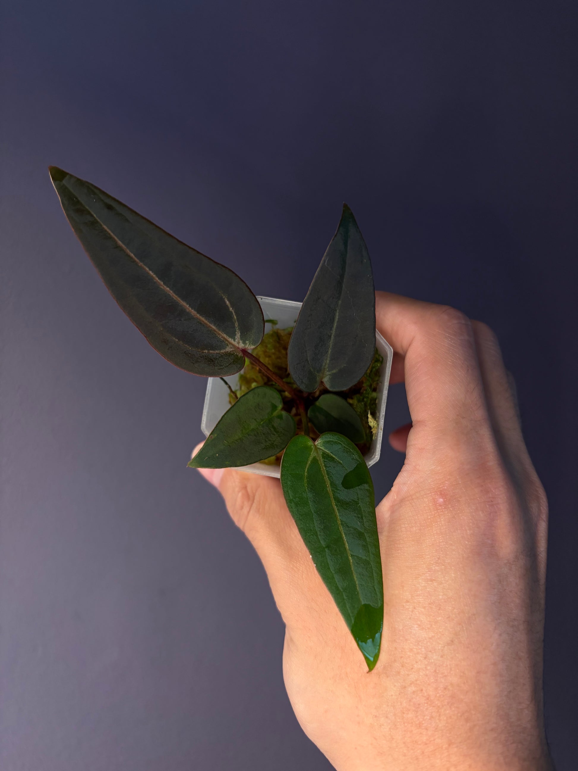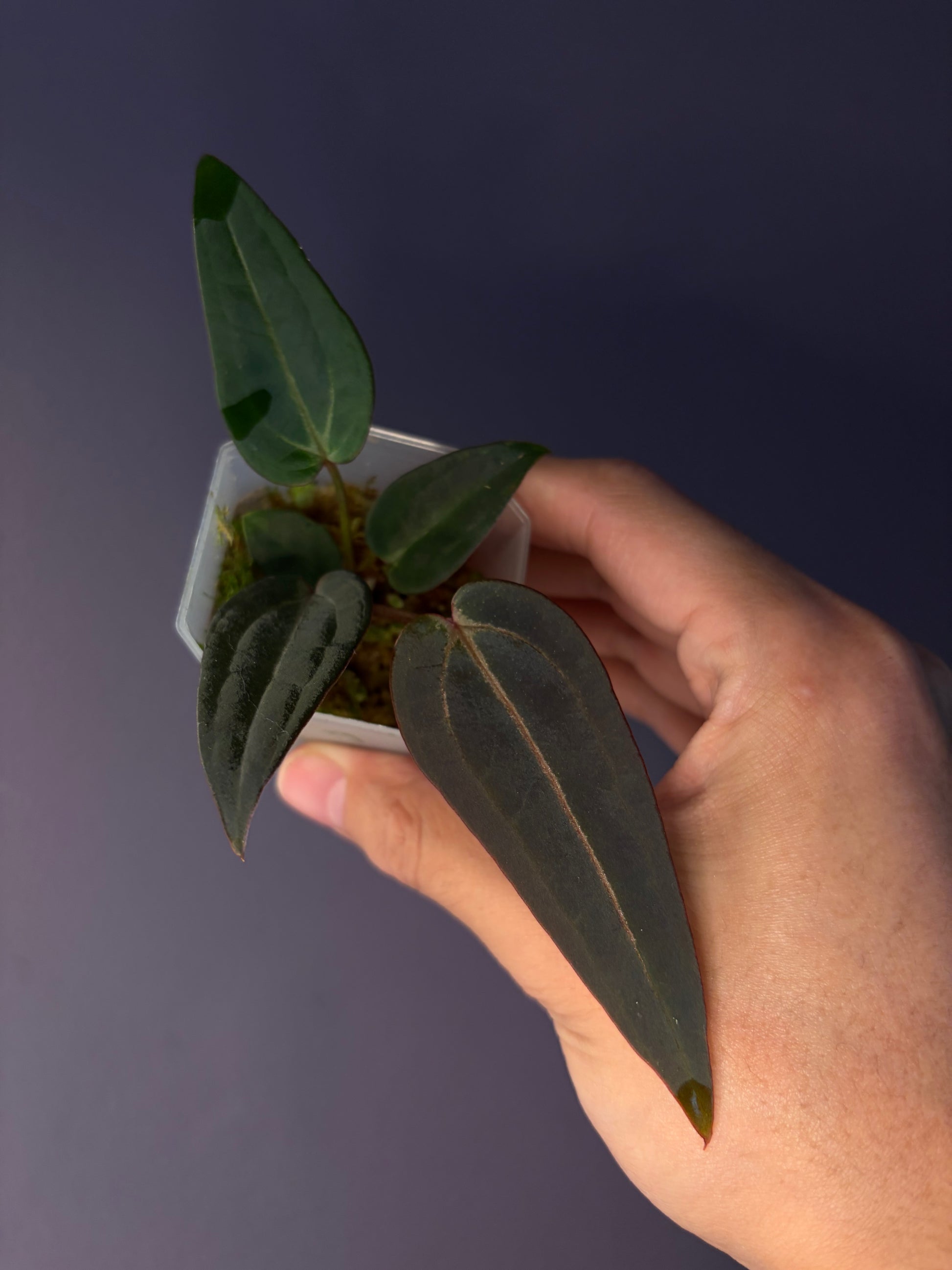Dark, elongated, minimal spidery veins! We offer a clone of this special cross, which has all you expected from a spidery vein anthuriums.