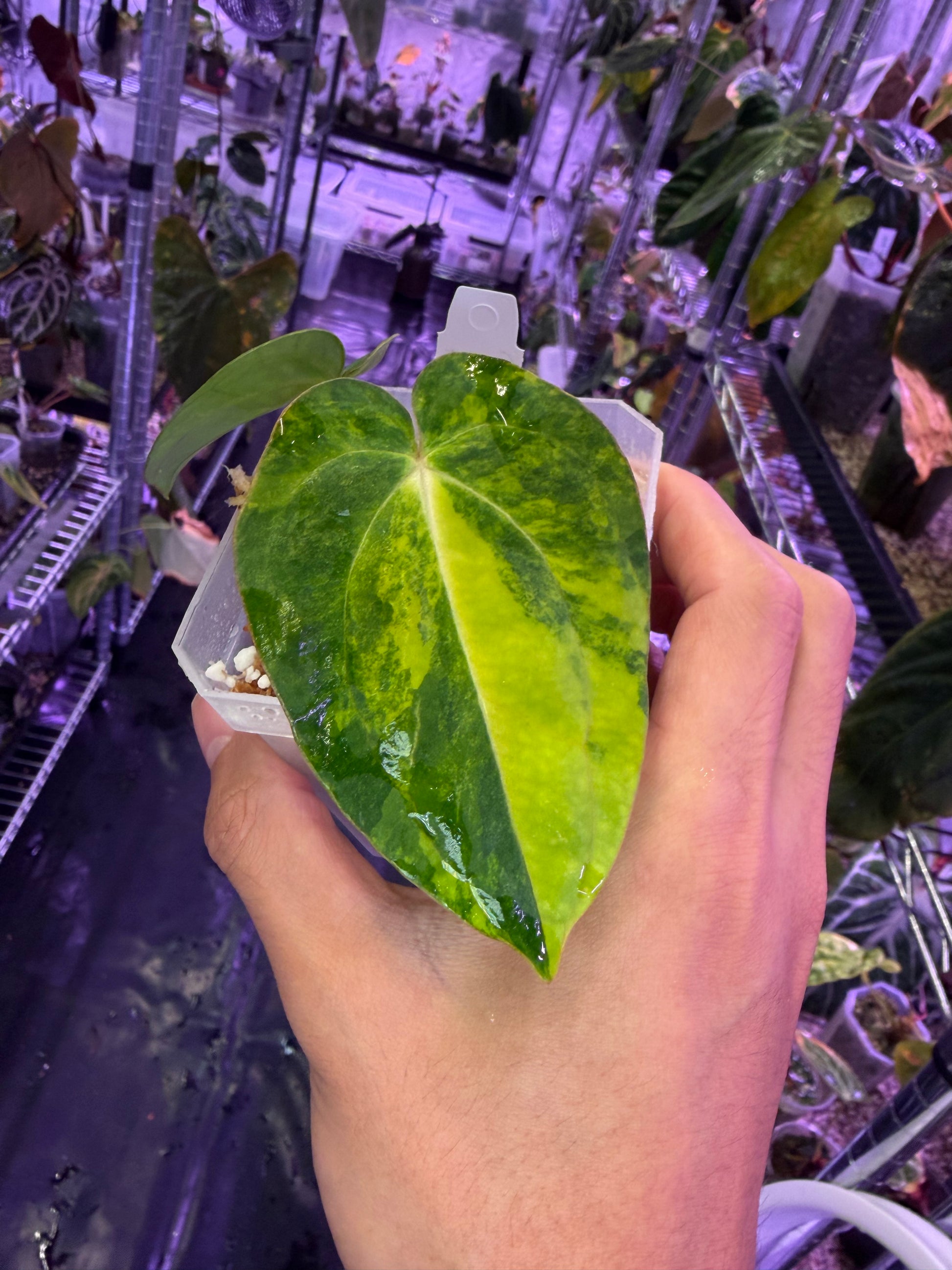 We have a few of this beautiful species available. It has beautiful variegated patterns and contrasting veins from both seed parent and pollen donor.
