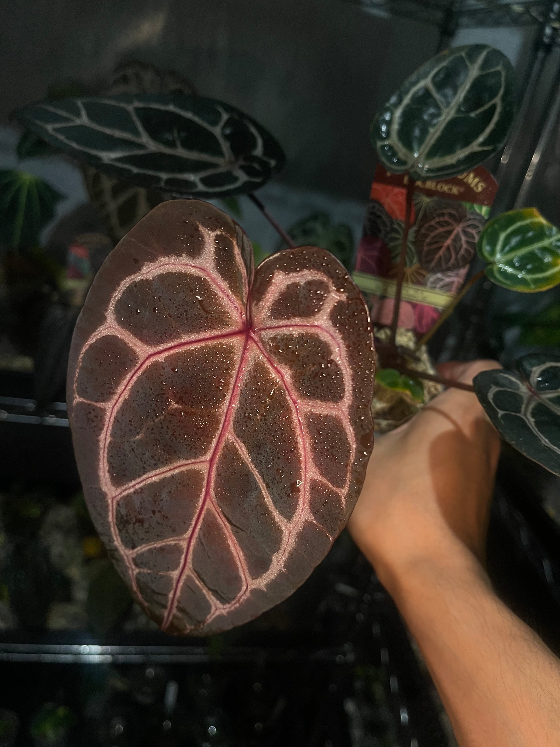 We have made a few selections of docblock plants, including this one with beautiful dark brown leaf and purple veins. In particular, the color can stay on the old leaf.